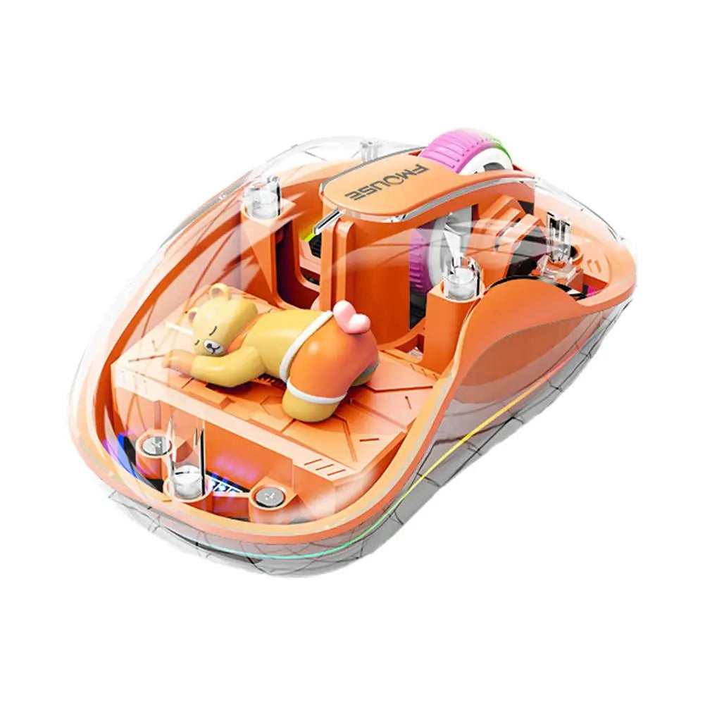 Long battery life transparent built-in doll wireless Bluetooth mouse power/connection status visible magnetic cover splicing three-mode silent desktop laptop rechargeable mouse universal